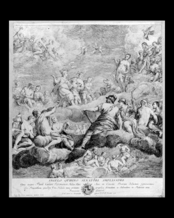 Presso Villa Revedin Bolasco è stata recentemente recuperata una grande incisione (767x530 mm) di Francesco Galimberti, che la vede protagonista. Si tratta della riproduzione di un dipinto attribuito alla bottega di Paolo Veronese e risalente agli anni ottanta del Cinquecento, intitolato Concilio degli dei. Ebe vi è rappresentata mentre ascende al Monte Olimpo accolta nell'assemblea delle divinità, cui porta in dono tutti i piaceri legati alla gioventù e alla bellezza. E voi, quali doni avreste voluto ricevere?