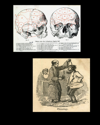 E se stai pensando a un freno per la logica, beh… sei fuori strada, ma non troppo! La frenologia è una teoria sviluppata alla fine del XVIII secolo da Franz Joseph Gall e in Italia largamente utilizzata da Cesare Lombroso. Secondo questa teoria le funzioni psichiche sarebbero localizzate in aree specifiche del cervello, e lo sviluppo di queste aree determinerebbe la forma esterna del cranio. I sostenitori di questa disciplina, ritenevano quindi possibile rilevare le attitudini e i tratti del carattere di un individuo palpando e misurando il suo cranio.